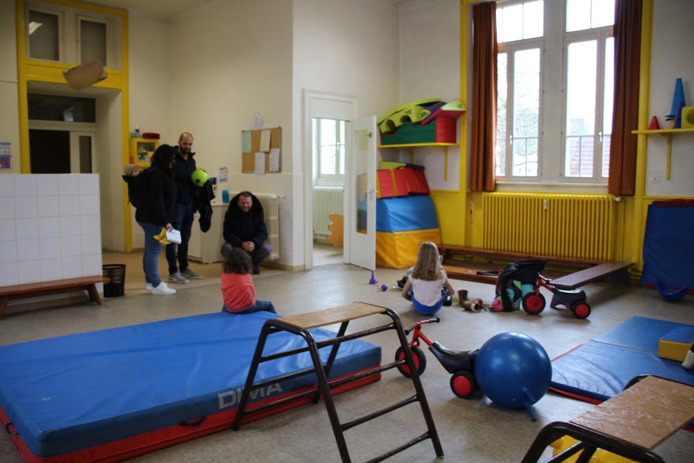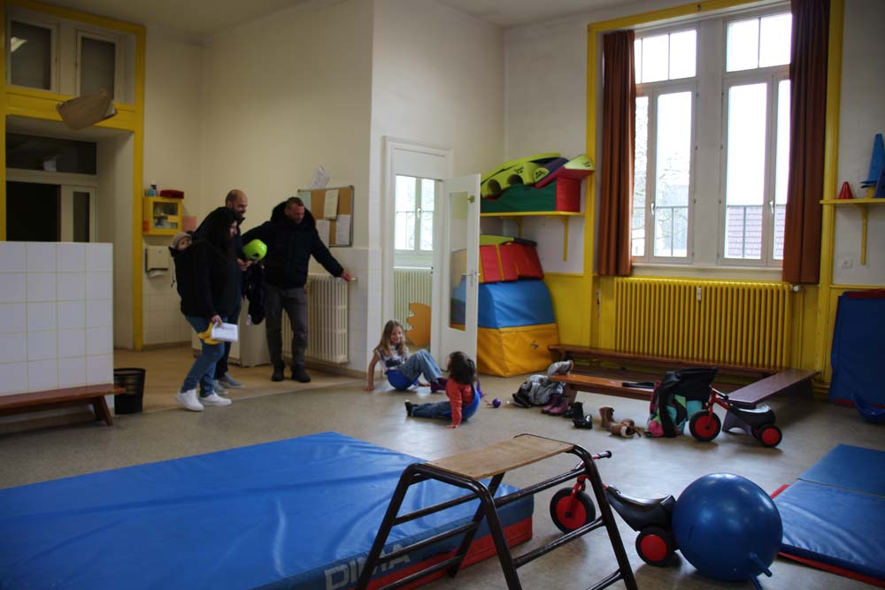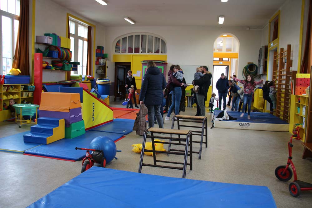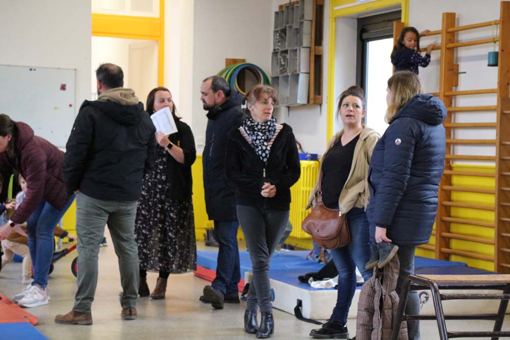 De nombreux parents, accompagnés de leurs enfants, attendaient devant le portail de l’école du Centre l’ouverture des portes.